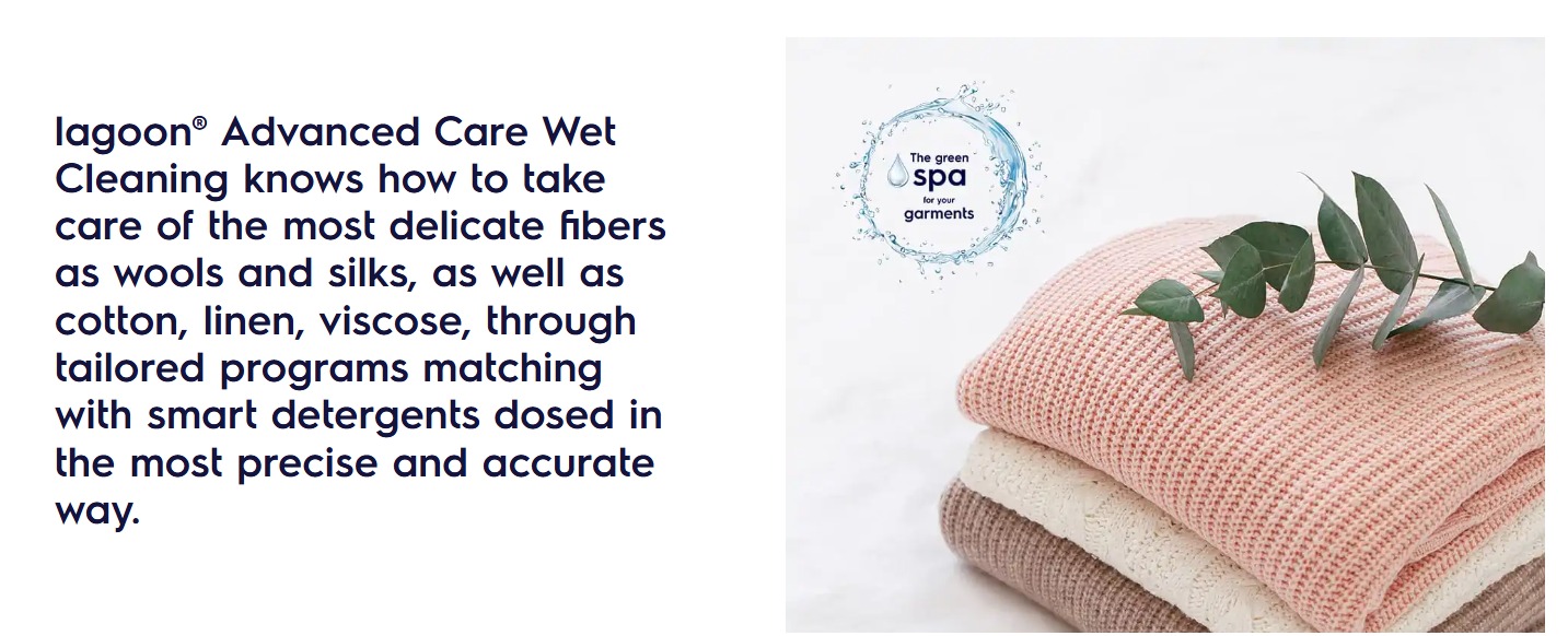 - Teknologi Lagoon™: Alternatif lebih hijau kepada dry cleaning, selamat untuk kulit sensitif dan mesra alam sekitar.